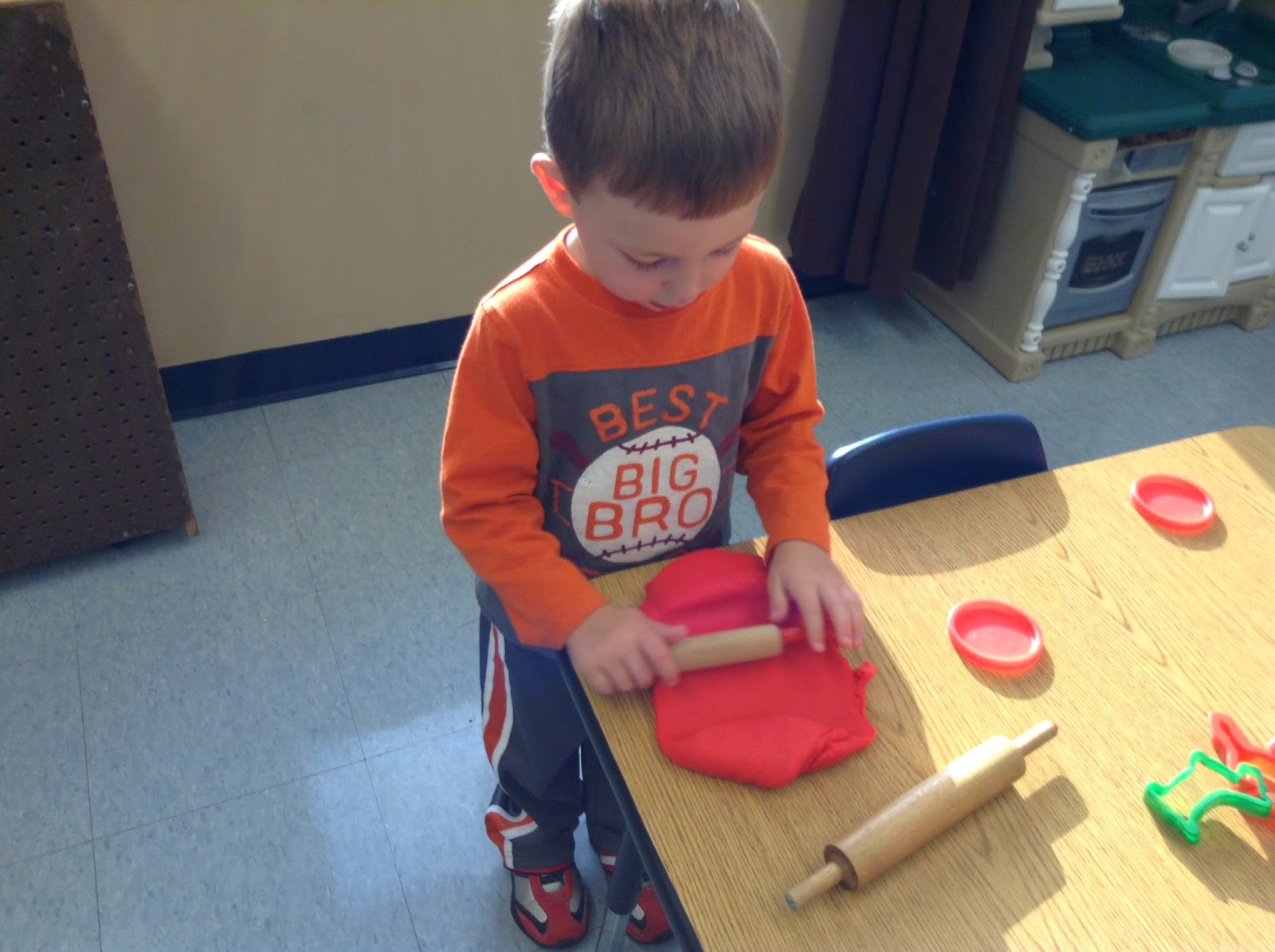 This week we introduced the sensory table. We currently have red and green pasta noodles in there. We worked on our scooping and pouring skills. This is a great way for us to feel and touch different things. The sensory table will be available during free choice time on most days.