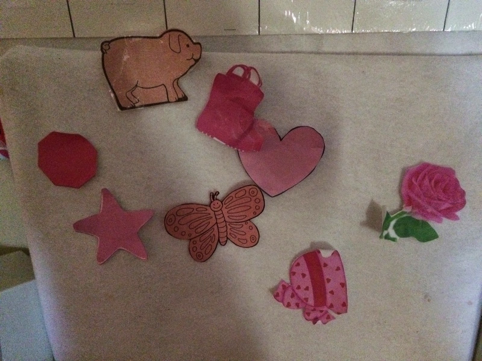 Our Color Board was filled with lots of pink items. Ask your child what they got to put on the pink board today.